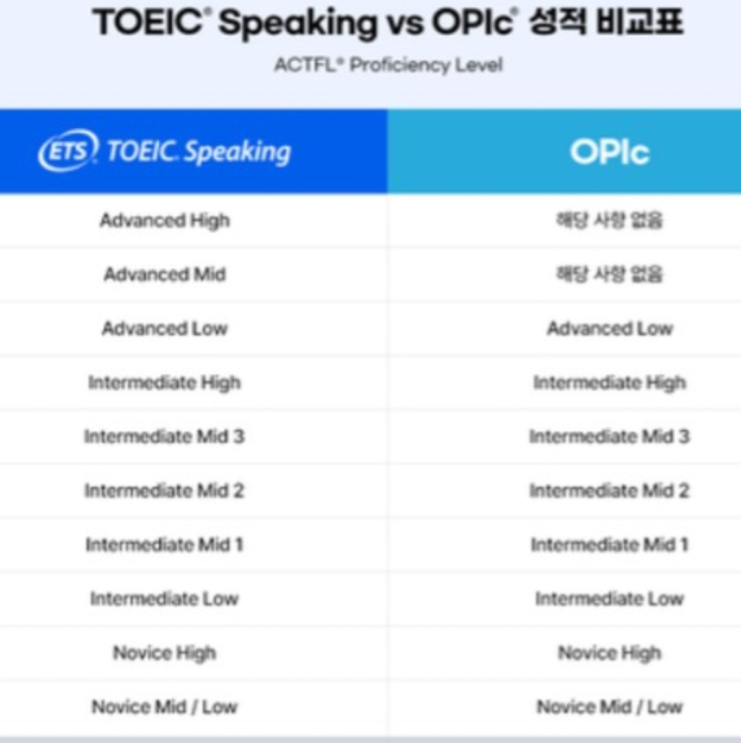 토익스피킹 정보 (레벨+시험구성방식+오픽과 점수 비교표)