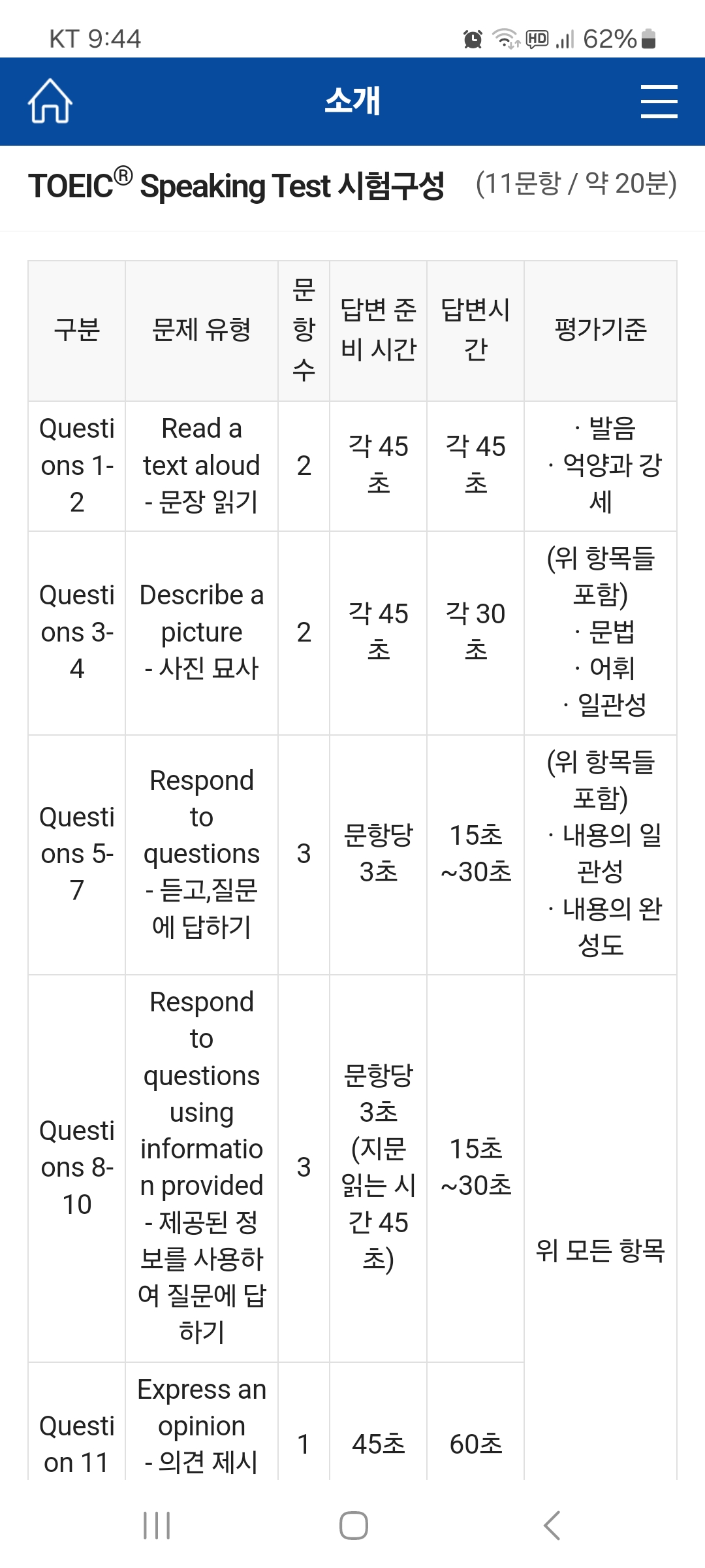 토익스피킹 개괄설명