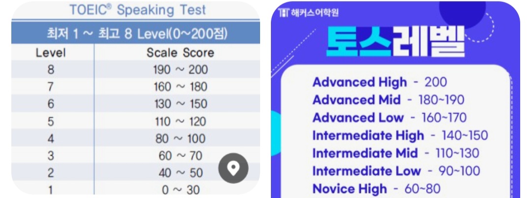 토익스피킹 레벨입니다.